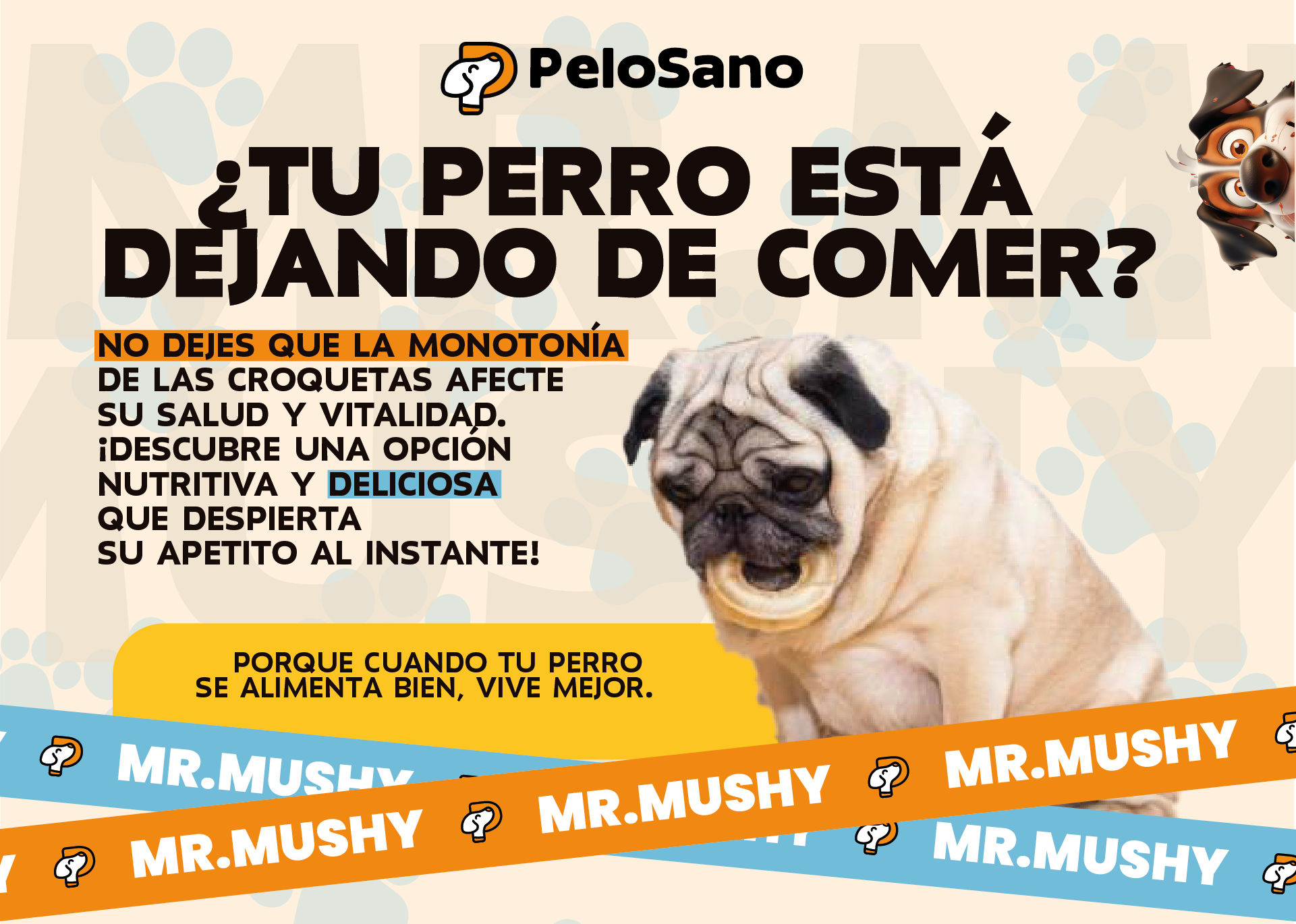 Tengo Labrador el siempre ha sido un perro con buen apetito, pero hace un par de meses, después de una operación, comenzó a perder interés en su comida. Probamos varias opciones y ninguna le convencía. Decidimos darle Mr. Mushy y, desde el primer día, se mostró mucho más animado a comer. La textura suave y el sabor a pollo parecen ser perfectos para él. Además, su aliento ha mejorado bastante y ya no huele tan fuerte. Es un producto que definitivamente recomendaría a otros dueños de mascotas que buscan algo natural y delicioso para sus perros